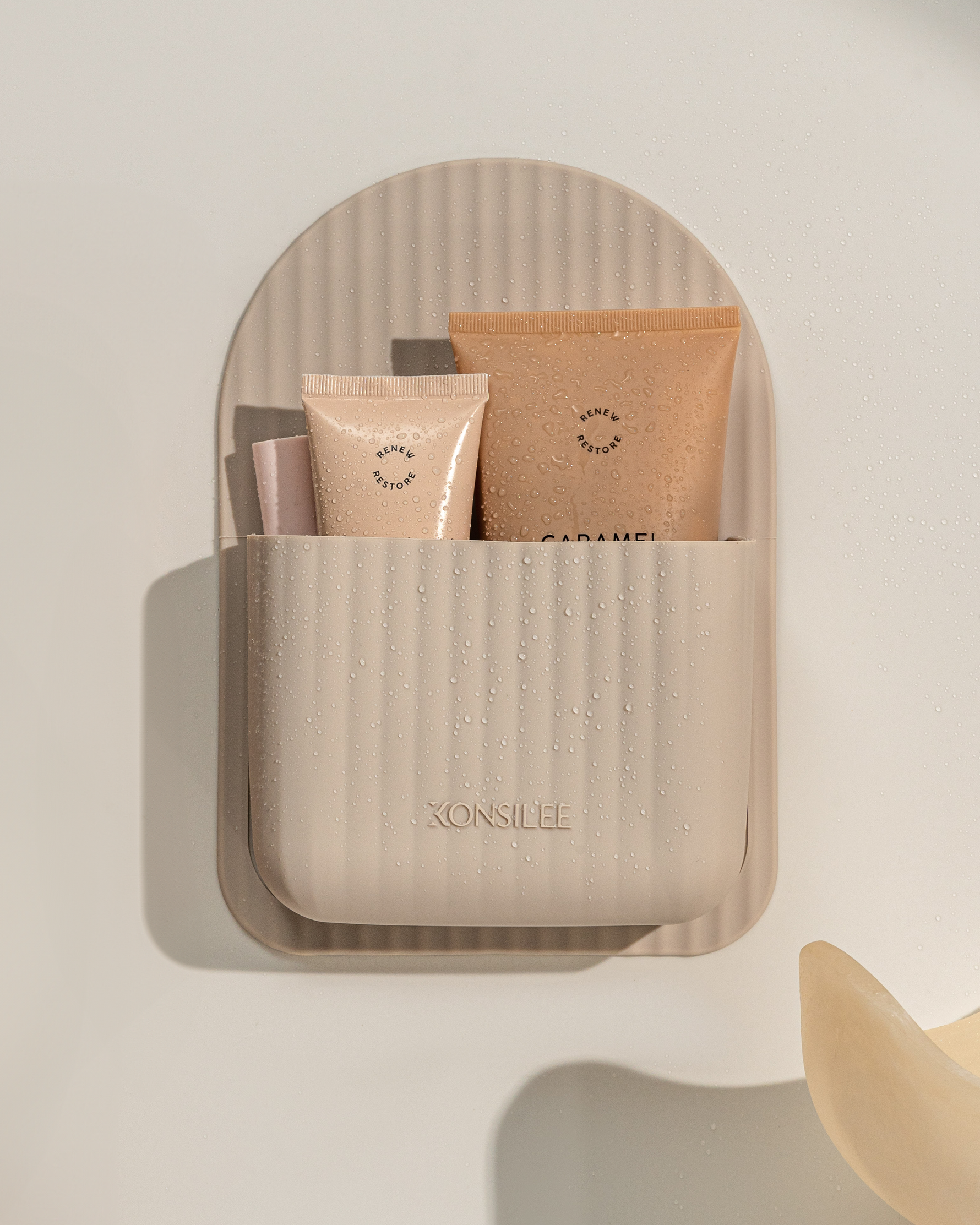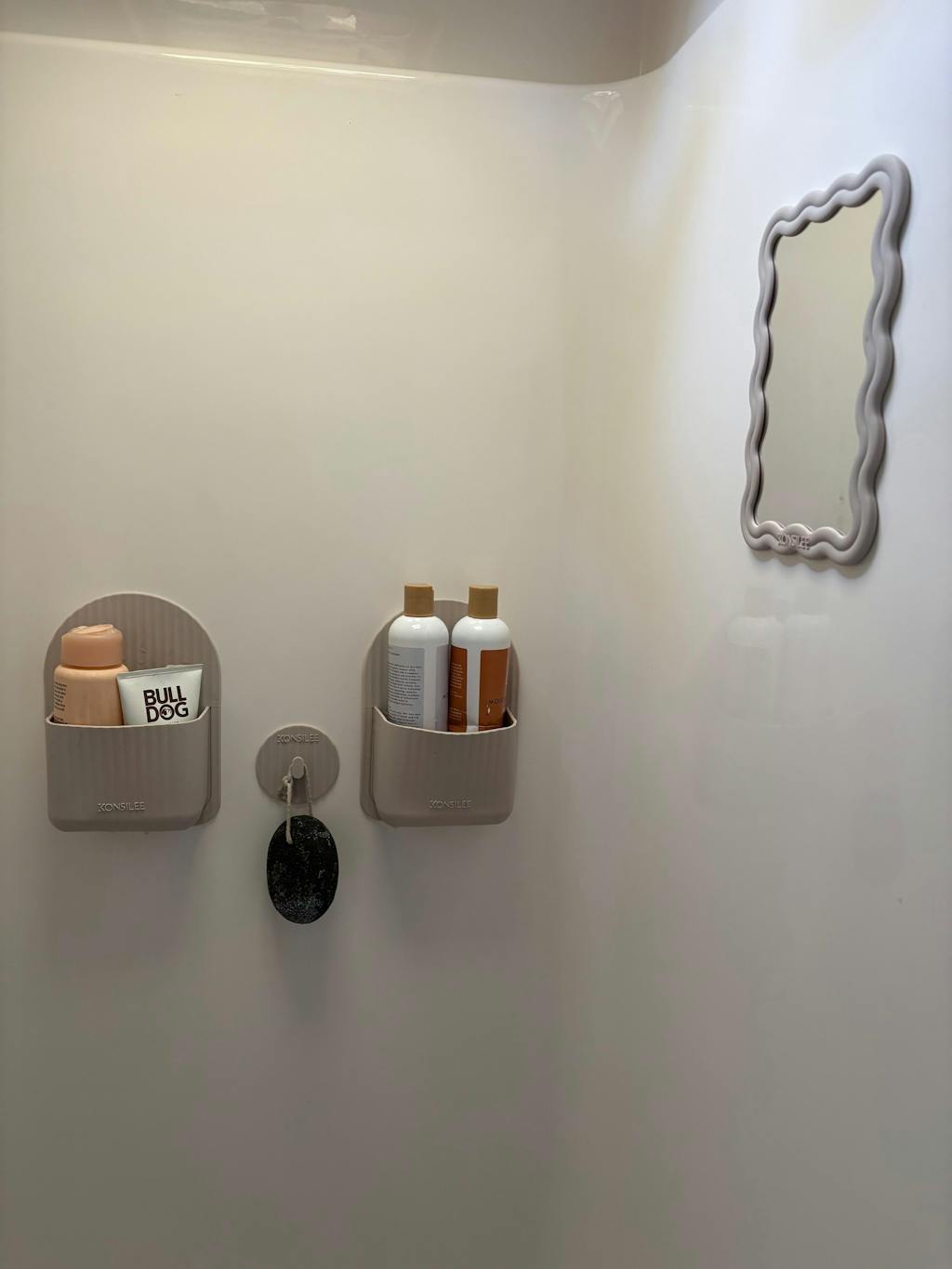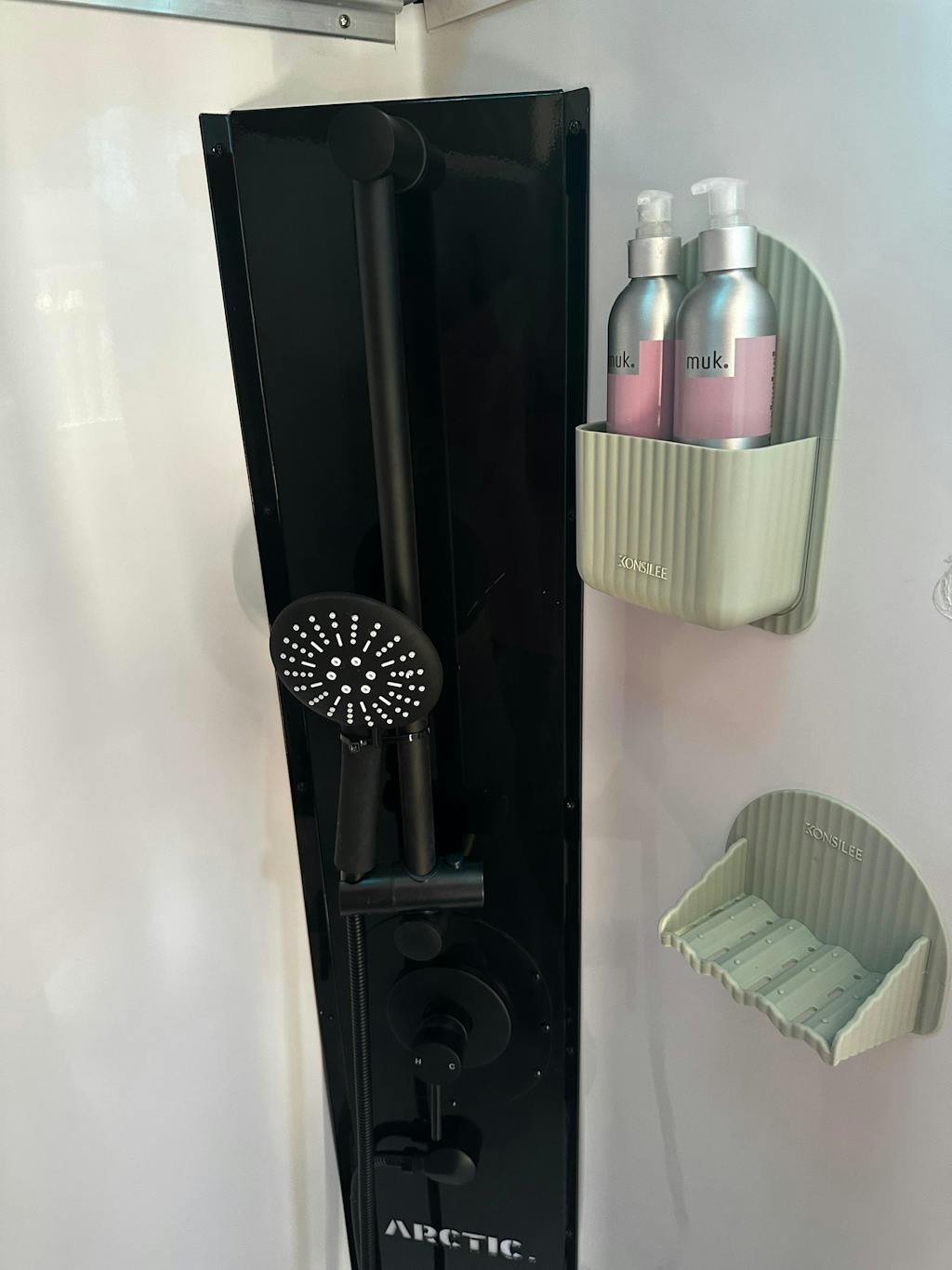 Crafted from soft, durable BPA-free silicone, Kendall is flexible, waterproof and made for everyday shower life. Our innovative no-residue adhesive means it installs in seconds. Simply peel, stick and store. No tools, no mess and no fuss.
