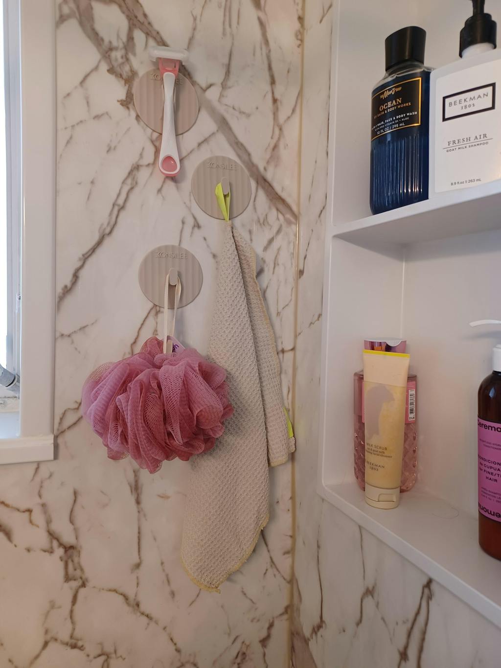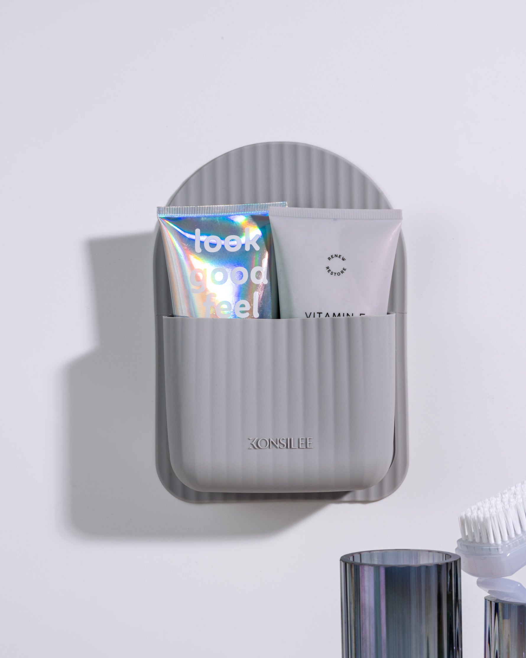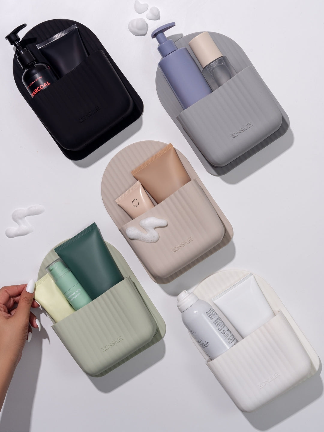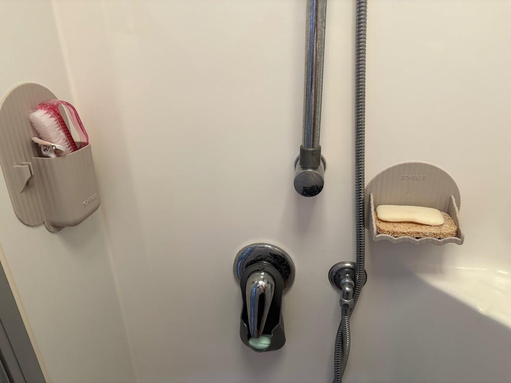 Crafted from soft, durable BPA-free silicone, Kendall is flexible, waterproof and made for everyday shower life. Our innovative no-residue adhesive means it installs in seconds. Simply peel, stick and store. No tools, no mess and no fuss.