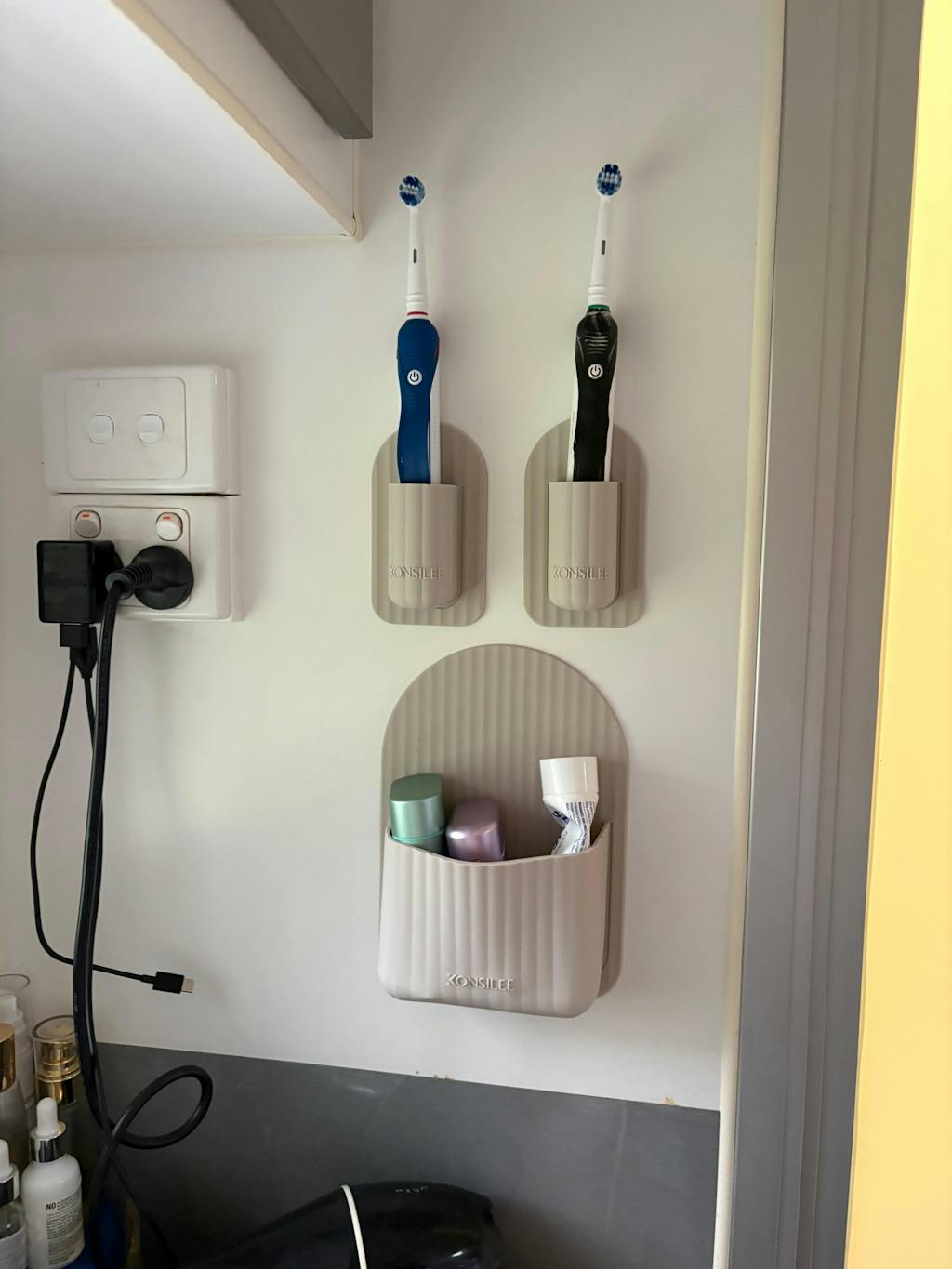 Our products use a very durable, no-residue adhesive to stick to almost any flat, shiny surface. This adhesive allows a strong grip to ensure your Konsilee product will not fall from the surface you stick it to.